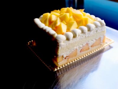 『黄金桃と黄金桃の黄金煮のセシルのショートケーキ』¥8,000 予約受付 セシルスペシャリテのもっちりしっとり生地に オ…